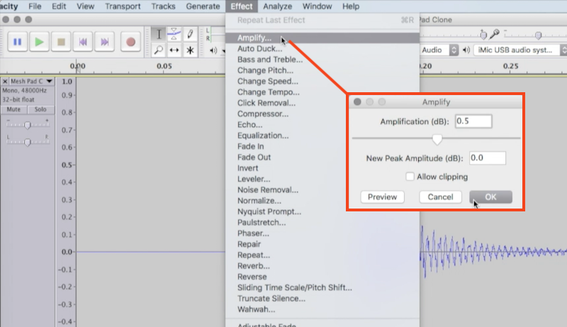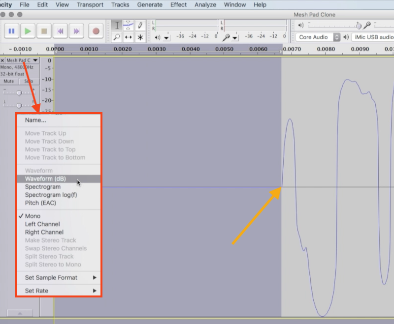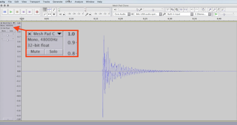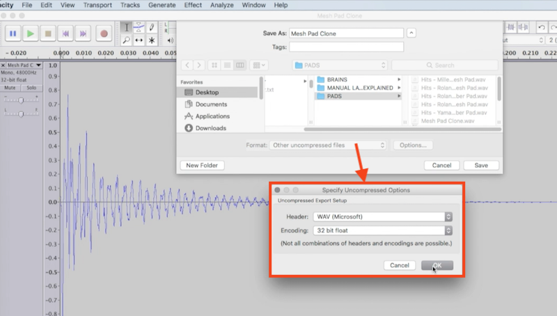 Connect the drum trigger pad to the input of you PC audio interface and record a couple of hits to an audio processor such as Audacity. Set the format to 48000 Hz, mono.